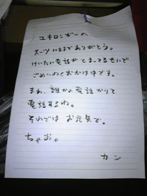 カン君の置き手紙。