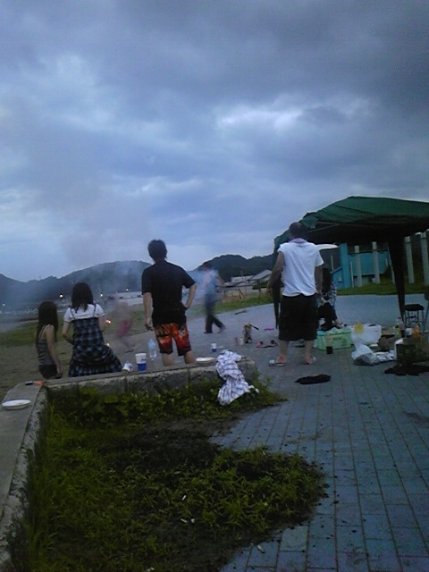 今帰った訳で。仕事終わってみんなでBBQをしたのだよ。雨の中。